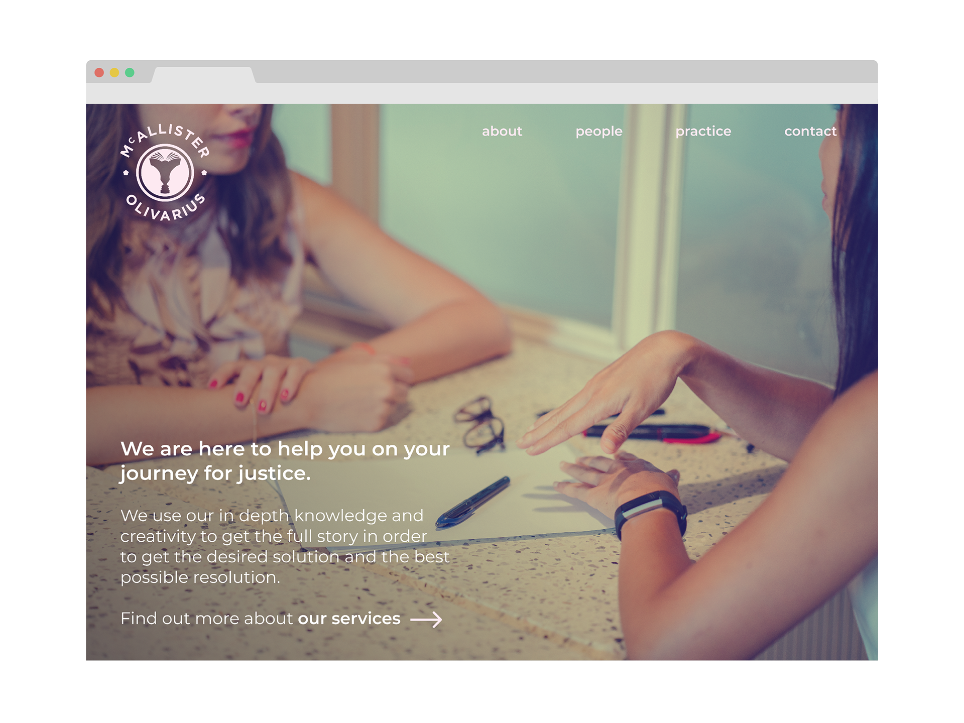 This elegant, yet modern logo concept for a global law firm specialising in sexual assault cases aims to represent the pure essence of the McAllister Olivarius brand. One which holds agency, collaboration, and empathy at it’s core. This is alluded to with the outline of people’s heads centrally facing each other or coming together. The logo mark also aims to show the yearning for knowledge and deep understanding of law which is key for any firm at the top of it’s class.